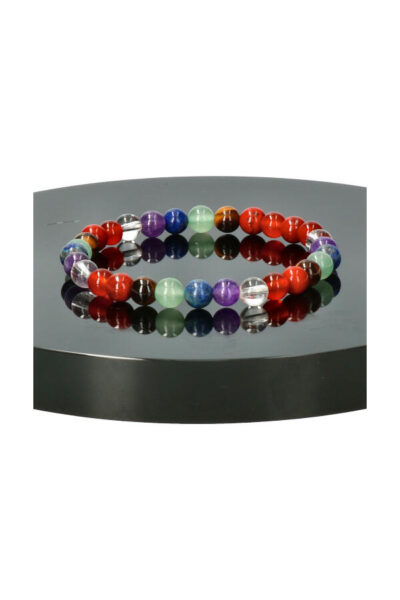 Met edelstenen worden veel chakra producten gemaakt. Maar waarom? De chakra’s zijn draaiende energie schijven waardoor energie van het etherische lichaam naar het fysieke lichaam stroomt. Via deze schijven of wielen, chakra betekent in het sanskriet wiel, wordt ons lichaam dus gevoed met de broodnodige energie. Die energie gaat rechtstreeks naar de klieren die aan de chakra’s gelieerd zijn. Die klieren maken vervolgens hormonen. Het is dus duidelijk dat de werking van de chakra’s voor een groot deel bepalen hoe wij ons voelen. Edelstenen zijn bij uitstek geschikt om deze chakra’s te voeden, ontwikkelen en zelfs te laten groeien. Dus voor een lekker uitgebalanceerd en energiek gevoel is het van belang aan de chakra’s te denken. Draag deze armband om de 7 hoofd chakra’s te voeden met energie en ze te helen.