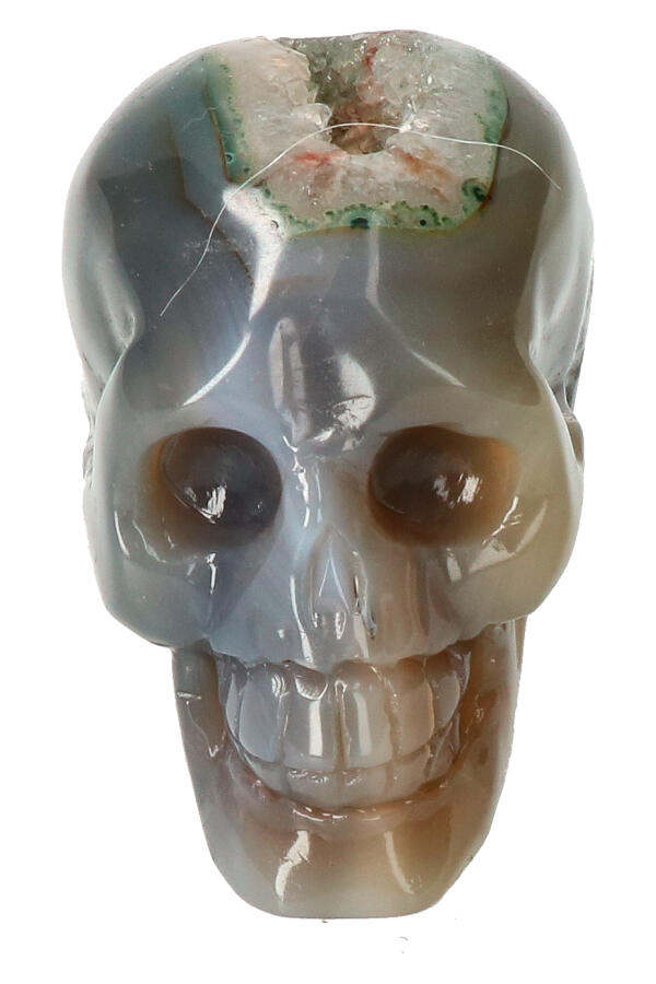 Agaat Geode Kristallen schedel, 9 cm, 331 gram