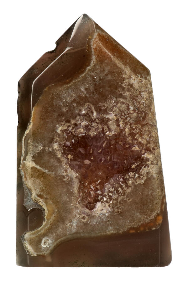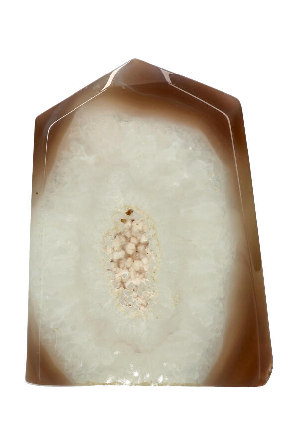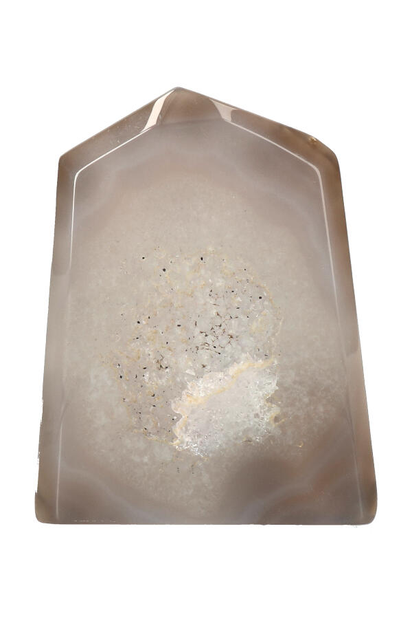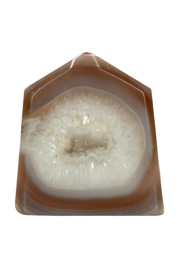 Agaat is een steen die stabiliseert, aardt en beschermd. Ze bevorderd innerlijke rust en zorgt daarmee voor een aardse nuchtere houding. Maar daar houden de eigenschappen van deze beschermende steen nog lang niet op. Spirituele en geestelijke groei worden bevorderd doordat de steen aanzet tot zelfreflectie. De steen laat je even afstand nemen zodat een en ander objectiever kan worden bekeken.