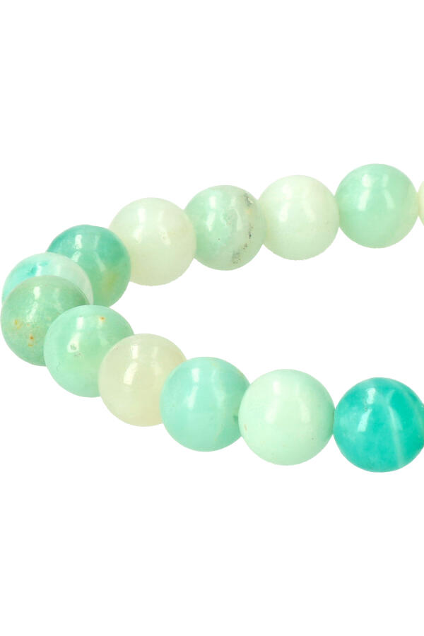 De steen werkt kalmerend en brengt evenwicht bij extreme stemmingswisselingen, verdriet, bezorgdheid, angst, trauma’s, zorgen en rouw. Amazoniet versterkt de vrije wil, vermindert een slachtofferhouding en helpt bij het oplossen van problemen omdat het verstand en intuïtie in balans brengt. Fysiek werkt de edelsteen ontkrampend en heeft een positieve invloed op de stofwisseling, zenuwen en het zenuwstelsel, de hersenen, hypofyse, thymus, osteoporose, tanden, huid en bij calciumtekort.