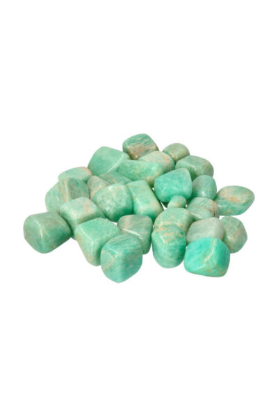 De steen werkt kalmerend en brengt evenwicht bij extreme stemmingswisselingen, verdriet, bezorgdheid, angst, trauma’s, zorgen en rouw. Amazoniet versterkt de vrije wil, vermindert een slachtofferhouding en helpt bij het oplossen van problemen omdat het verstand en intuïtie in balans brengt. Fysiek werkt de edelsteen ontkrampend en heeft een positieve invloed op de stofwisseling, zenuwen en het zenuwstelsel, de hersenen, hypofyse, thymus, osteoporose, tanden, huid en bij calciumtekort.