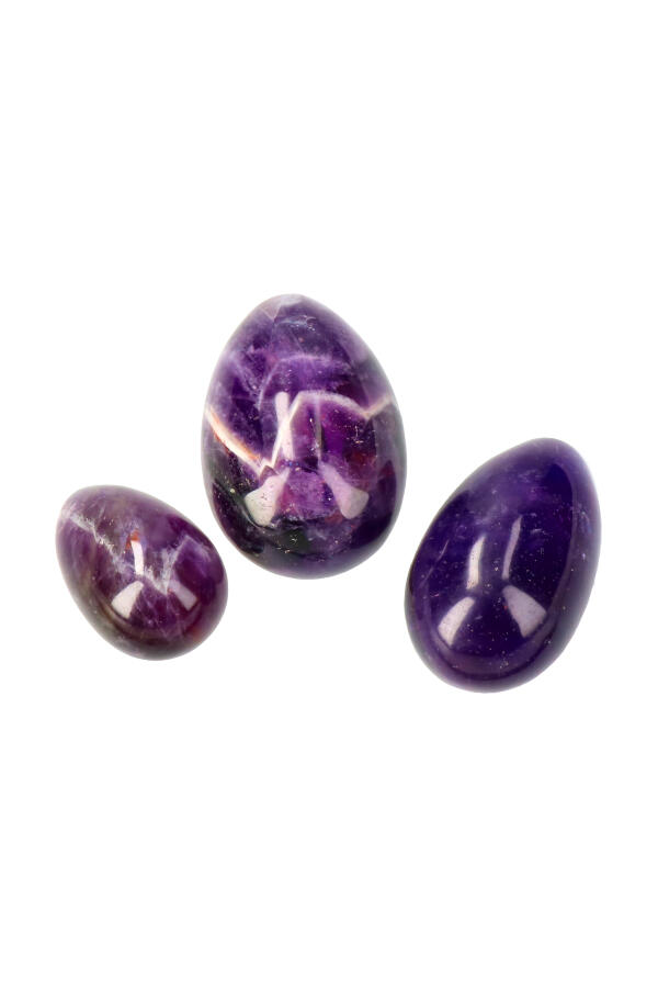 Amethist Yoni Ei, Set van 3 maten, met of zonder gaatjes