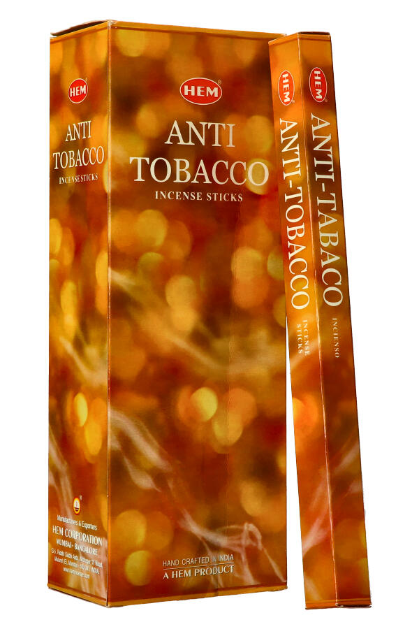 Anti Tobacco wierook van HEM haalt de nare geur van sigaretten en sigaren rook uit huis. Feestje gehad of gewoon een gezellige avond met rokers? Anti Tobacco wierook van HEM heeft het huis binnen no time weer fris. HEM anti tobacco wierook komt uit India.