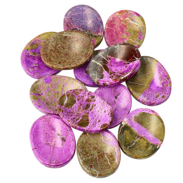 Een steen met een opvallende uitstraling en een bijzondere energie. Deze Atlantisiet duimstenen vallen direct op door hun unieke combinatie van zachte groentinten met levendige paarse patronen. De steen bestaat uit een natuurlijke mix van Serpentijn en Stichtiet, wat Atlantisiet zijn karakteristieke kleuren en energetische werking geeft.