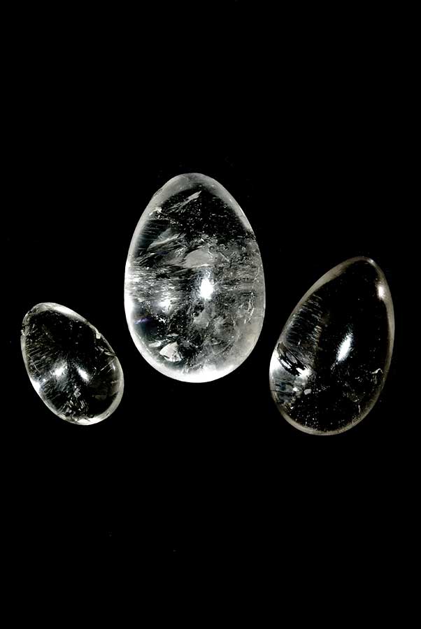 Bergkristal Yoni ei Set van 3, Large, Medium en Small, met of zonder gaatjes