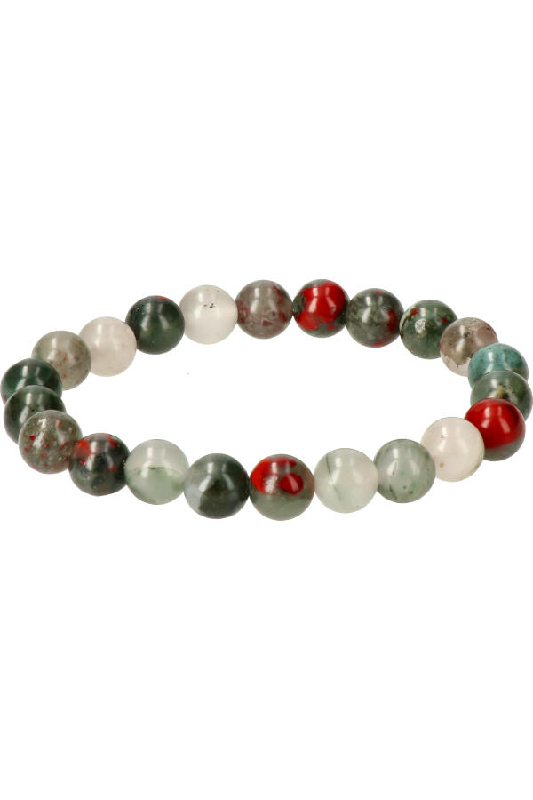 Bloedsteen versterkt de concentratie en het geheugen. Helpt ook bij het uitvoeren van beslissingen. Kan een prima steen zijn bij rouwverwerking en geeft zijn drager compassie en wijsheid. Heliotroop is een steen van balans en harmonie. De steen heeft twee contrasterende kleuren. Gezamenlijk zorgen deze voor harmonisering van de hogere chakra’s (keel, voorhoofd, kruin) en de lagere chakra’s (basis, heiligbeen, zonnevlecht).