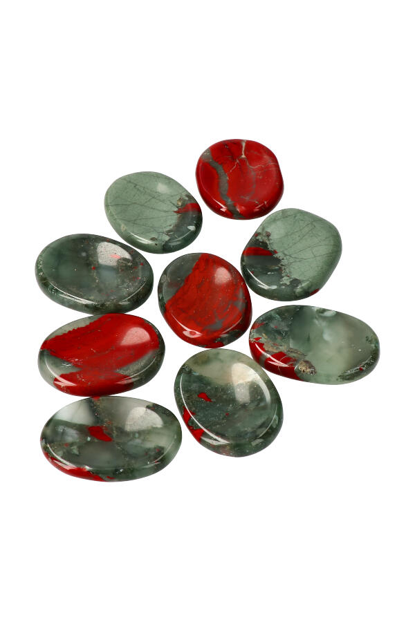 Bloedsteen versterkt de concentratie en het geheugen. Helpt ook bij het uitvoeren van beslissingen. Is een prima steen bij rouwverwerking en geeft zijn drager compassie en wijsheid. Heliotroop is een steen van balans en harmonie.