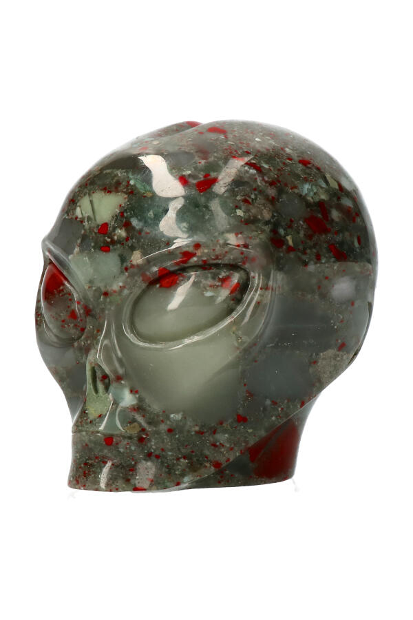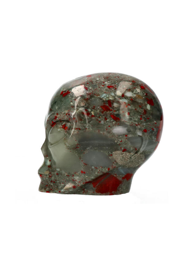 Bloedsteen, de naam spreekt tot de verbeelding. Oorspronkelijk werd de staan Heliotroop genoemd maar door de bloedrode vlekken doopte menigeen de steen al snel tot Bloedsteen. De steen heeft een ongekend hoge energieafgifte. De extra energie is direct voelbaar. Het is dan ook een goede steen bij revalidatie en ziekten. Verkoudheid en griep hebben geen schijn van kans. Verder brengt Bloedsteen geluk en laat het tegengestelden samenkomen. De steen werkt kalmerend en activerend tegelijk. Het helpt hierdoor ook bij het maken van beslissingen.