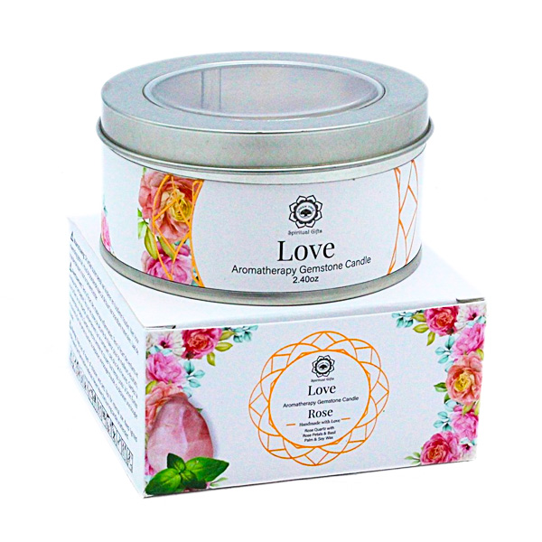 Geurkaarsje Green Tree, Love Rose, 70g r. Gemaakt van soya en palm wax.