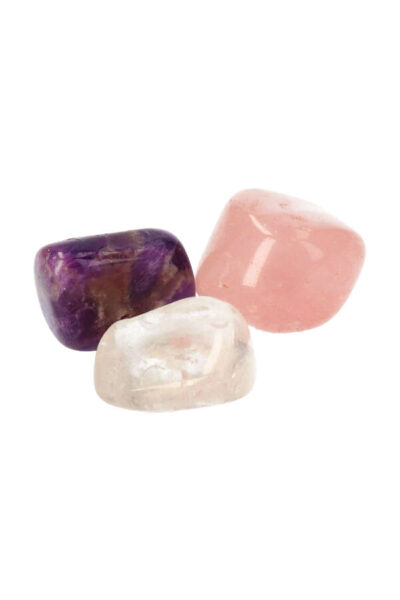 Elk van onze gouden driehoek trommelstenen is zorgvuldig geselecteerd en met de hand gepolijst om hun natuurlijke schoonheid te verbeteren en hun helende energie te optimaliseren. Amethist staat bekend om zijn kalmerende eigenschappen, rozenkwarts om zijn liefdevolle vibraties en bergkristal om zijn zuiverheid en helderheid. Samen vormen ze een krachtige synergie die harmonie, balans en welzijn bevordert.