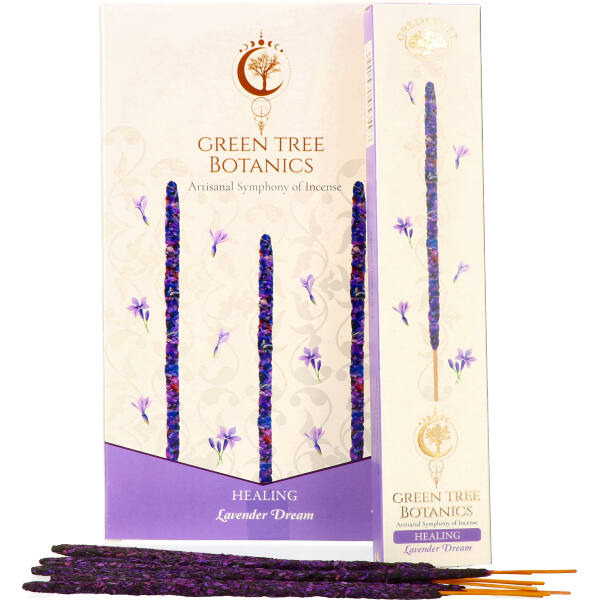 Laat je meevoeren door de rustgevende geur van Green Tree Botanics Healing Lavender Dream. Deze natuurlijke, handgerolde wierook combineert de kalmerende kracht van lavendel met helende kruiden en harsen. Het resultaat is een zachte, harmonieuze geur die spanning loslaat en je omhult met innerlijke rust en welzijn.