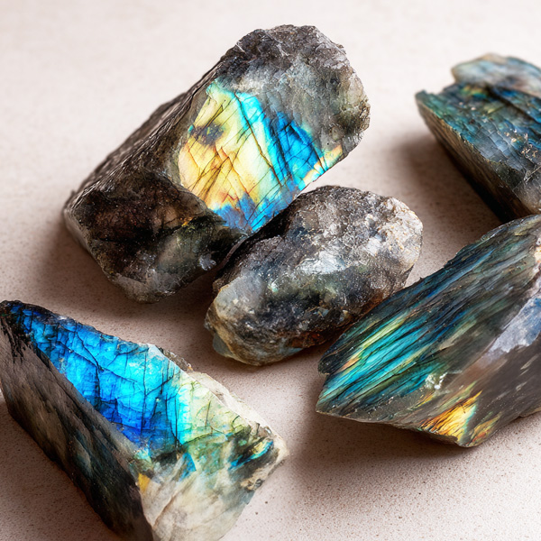 Wie labradoriet ziet, snapt meteen waarom deze steen zo geliefd is. Deze ruwe stukken zijn van prachtige kwaliteit, met een intense glans die kleuren laat oplichten als blauw, groen en goud. Elke steen is uniek, een stukje natuurkunst dat je blijft bewonderen.