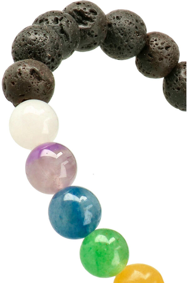 Deze armband is afgestemd op alle zeven hoofdchakra’s. Door het dragen ervan kunnen geblokkeerde energiebanen op een zachte manier weer gaan stromen. De lavasteen versterkt dit proces door negatieve energie af te voeren en innerlijke rust te bevorderen.