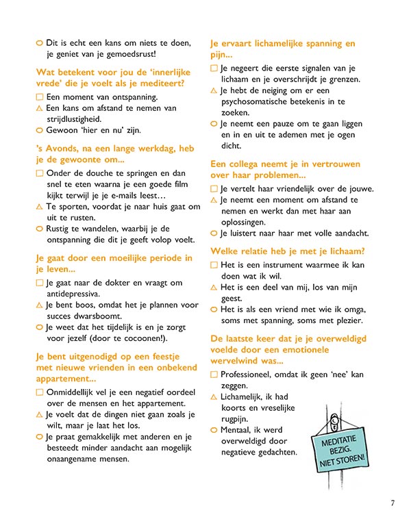 Voel je rustig en in balans met meditatie. Dankzij het complete programma in dit boek train je jezelf stap voor stap om je spanningen en emoties te kalmeren, je gedachten te controleren, je geest te openen en je leven een boost te geven. Dé anti-stress en feelgood-methode die altijd en overal beschikbaar is.