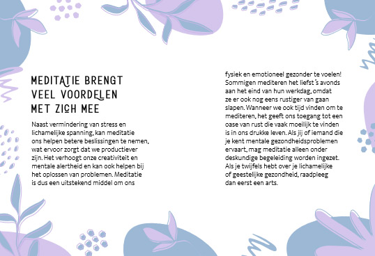 In het hectische tempo van onze drukke dagen kan meditatie een welkome onderbreking zijn van de constante stroom van verplichtingen en zorgen. Het biedt een moment van innerlijke stilte en hernieuwde energie. Dit boekje, gevuld met praktische tips en inspirerende quotes, is ontworpen om je te helpen een langdurige en helende meditatie routine op te bouwen. Hierdoor kun je niet alleen ontspannen, maar ook een diepere staat van welzijn bereiken. Laat je inspireren door de woorden van wijsheid en praktische adviezen die je stap voor stap begeleiden naar een meer ontspannen en evenwichtig leven. Of je nu een beginner bent of al ervaring hebt met meditatie, dit boekje biedt waardevolle inzichten om je innerlijke rust te verdiepen en je dagelijkse leven te verrijken.