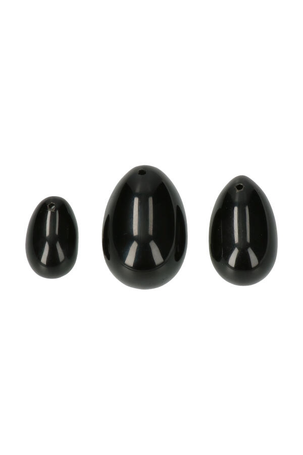 Obsidiaan Yoni ei set van 3, Large, Medium en Small, met of zonder gaatjes