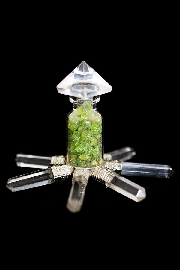 Peridoot maakt de spirituele bestemming inzichtelijk en laat zo de zin van dit leven zien. Het kristal verwijderd zware trillingen en blokkades terwijl het negatieve entiteiten en kwade geesten op afstand houdt. De steen stemt positief en zorgt voor een heldere opgewekte blik op het leven. Het opent nieuwe bewustzijnsniveaus en helpt verantwoording te nemen voor het eigen leven. Daarnaast verbeterd Peridoot relaties, ontgift en opent, reinigt en activeert het de hart en zonnevlecht chakra’s. Zorgen verdwijnen als sneeuw voor de zon, zelfvertrouwen en assertiviteit worden verhoogd terwijl de steen laat zien hoe je kan leven in de volle spirituele energie.