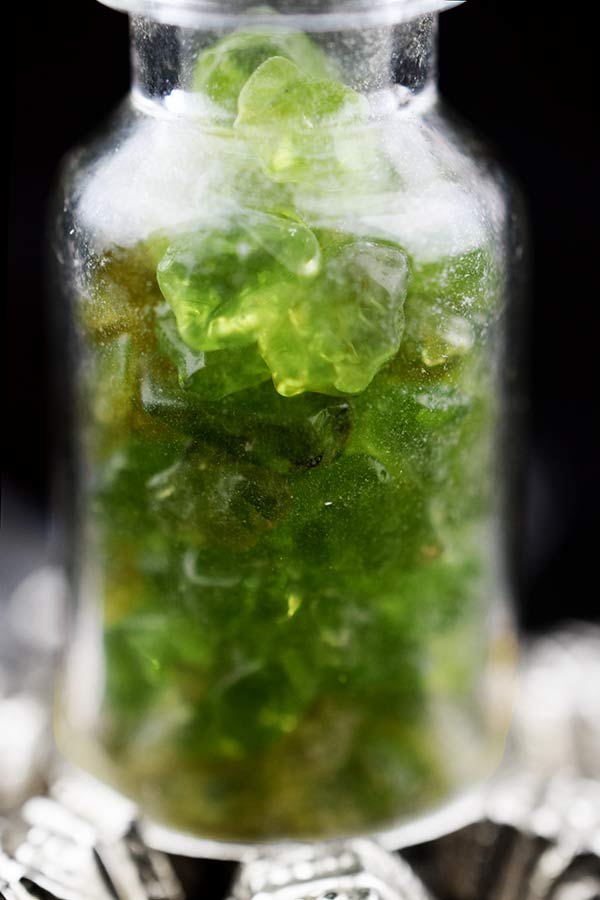 Peridoot maakt de spirituele bestemming inzichtelijk en laat zo de zin van dit leven zien. Het kristal verwijderd zware trillingen en blokkades terwijl het negatieve entiteiten en kwade geesten op afstand houdt. De steen stemt positief en zorgt voor een heldere opgewekte blik op het leven. Het opent nieuwe bewustzijnsniveaus en helpt verantwoording te nemen voor het eigen leven. Daarnaast verbeterd Peridoot relaties, ontgift en opent, reinigt en activeert het de hart en zonnevlecht chakra’s. Zorgen verdwijnen als sneeuw voor de zon, zelfvertrouwen en assertiviteit worden verhoogd terwijl de steen laat zien hoe je kan leven in de volle spirituele energie.
