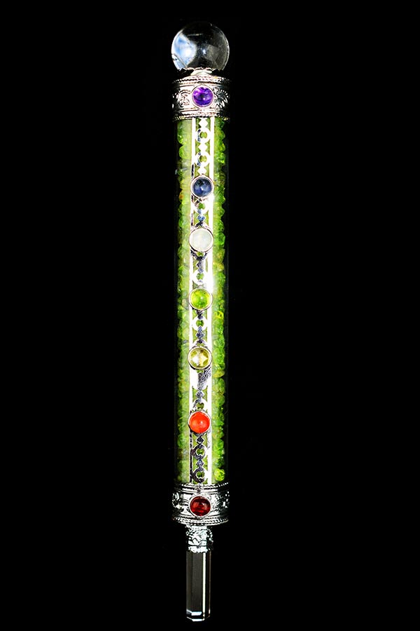 Peridoot healing wand, 16 – 18 cm, verzilverd
