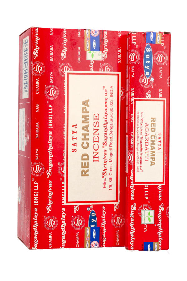 Red Champa heeft tonen van Nag Champa maar bezit een wat dieper geur pallet. Red Nag Champa is ook bekend als Shanthimalai Nag Champa. Satya Wierook is volledig hand gerold en vervaardigd uit natuurlijke kruiden en bloemen. Elk pakje bevat 15 gram wierook. In een pakje zitten ongeveer 13 tot 15 stokjes. Satya is wereldberoemd met haar wierook Sai Baba Nag Champa.