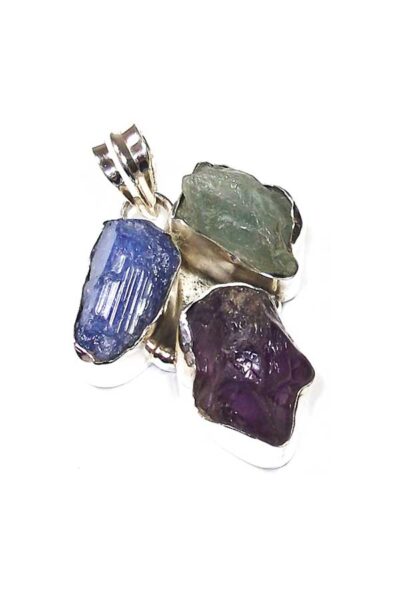 Tanzaniet, Amethist en Aquamarijn zilveren hanger, 925 sterling, 3 cm