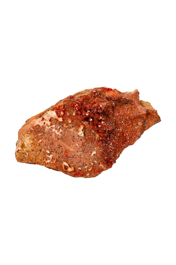 Vanadiniet wordt enkel gevonden in Marokko en is een zeer krachtig aardende steen. Ze helpt om beter in te dalen in de huidige incarnatie, prettig te voelen op deze aarde, in dit lichaam en haalt je uit het ego naar de ziel. Verder zorgt de prachtig schitterende steen ervoor dat het ego niet meer afleidt en er dus rust en concentratie is. Het stimuleert en brengt balans in creatieve en seksuele energie en is een krachtige heler bij vermoeidheid, astma en andere ademhaling en longproblematiek.