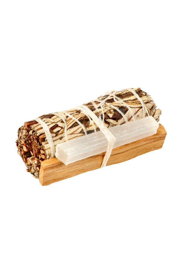 Ben je op zoek naar de ultieme manier om je huis, je energie en je geest te zuiveren en te beschermen? Ontdek de magie van deze smudge stick bundel, waarin de krachtige combinaties van witte salie, yerba santa, seleniet en palo santo samenkomen. Deze spirituele toolkit is als een wellnessbehandeling voor je ziel, waarbij elke component zijn eigen unieke kracht bijdraagt. Het is de perfecte bundel voor wie niet alleen wil reinigen, maar ook positieve energie wil aantrekken en diepe spirituele verbinding wil ervaren.