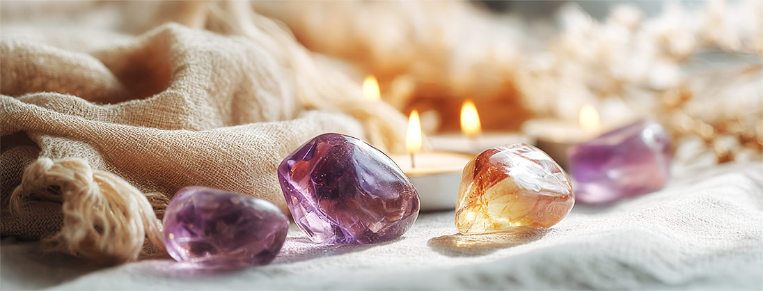 Ametrien bevat twee mineralen; Amethist en Citrien. Niet geheel toevallig verenigt deze combinatiesteen dan ook het beste van twee werelden. De verhelderende, zuiverende en kalmerende energie van Amethist samen met de zonnige en dynamische energie van Citrien. De duo steen laat verstand en intuïtie samenvloeien, geeft creatieve ideeën en zet tegelijk aan om ze ook daadwerkelijk uit te voeren. De edelsteen geeft inzicht en aanpassingsvermogen zodat beperkende gedrag- en denkpatronen makkelijker te veranderen zijn.