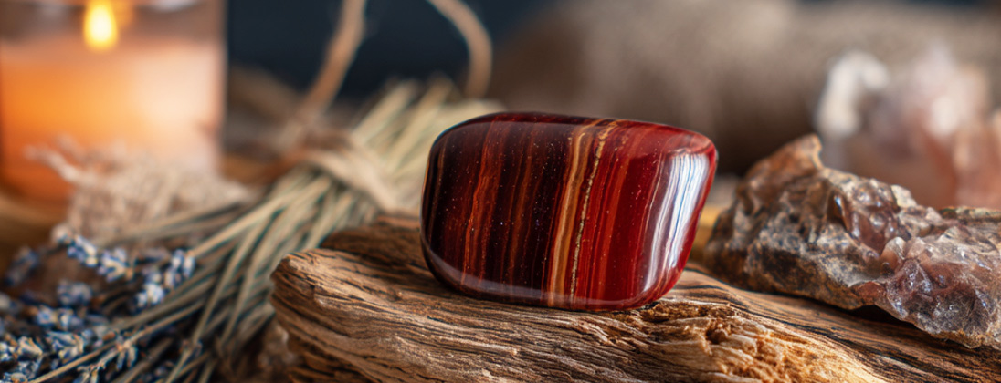 Rode Tijgeroog is de meest aardende van zijn familie. De sterke steen vol passie en kracht wordt dan ook heel toepasselijk Stierenoog genoemd. De steen haalt vermoeidheid weg, geeft een overdosis aan motivatie, recht letterlijk en figuurlijk de ruggengraat en zorgt voor een gezonde seksdrive. Nog een belangrijke eigenschap van deze manifesterende steen is de kwaliteit om ware liefde te brengen. Het pakt verbindingsproblemen aan. Hierdoor kan weer worden gekozen voor onvoorwaardelijke liefde. Als klap op de vuurpijl tracht de Rode Tijgeroog ook meteen maar even de juiste partner aan te trekken of de huidige partner te openen voor onvoorwaardelijke liefde.